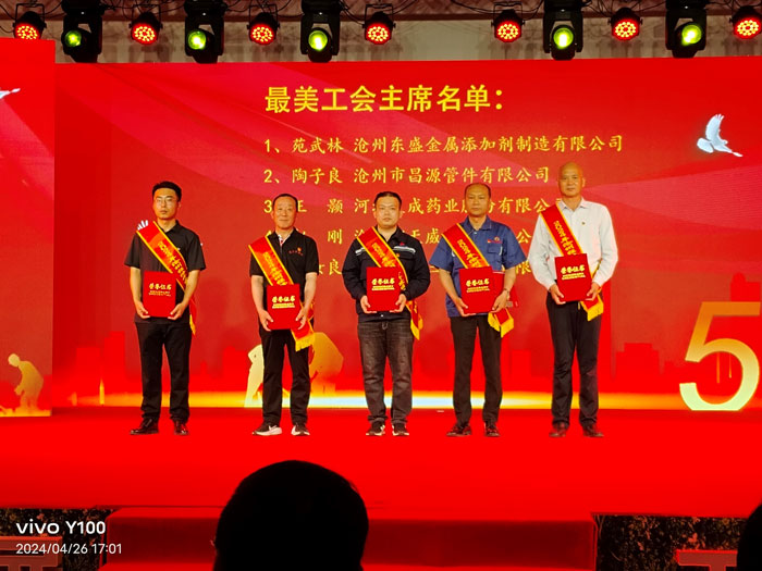 会上,公司董事长王振刚作为企业代表发表致辞,王总感谢了市总、区总在关心、关爱广大职工工作中的政策、做法,表达了劳动者建功立业的信心和决心,称赞了在党和人民的共同努力下营造的朝气蓬勃的营商环境,最后,王总将诚挚的五一劳动节的祝福送给劳动者们。公司工会主席王颢和开发区其他单位的五名最美工会主席和六名最美劳动者接受了表彰。刘植梅最为沧州市劳动模范分享了他的典型事迹。大会还慰问了外地驻区一线劳动者,表达了沧州开发区的包容与有爱,彰显了相亲相爱一家人的和谐劳动氛围。