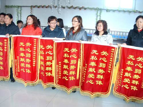 11月27日,我公司向沧州市福利院捐献了价值3000余元的儿科系列用药。该活动由市文明办、新华区宣传部,民政局、新星社区共同倡导的。共有六家单位和个人参与了这次活动并捐献了款物。福利院向献爱心的单位和个人赠送了“关心弱势群体,无私奉献爱心”的锦旗。