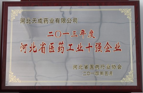(本报讯 戴其超)5月30日,河北省医药行业协会第二届理事会第四次会议在保定召开,天成药业荣获“2013年度河北医药工业十强企业”和“2013年度河北医药工业利税大户”两项殊荣。