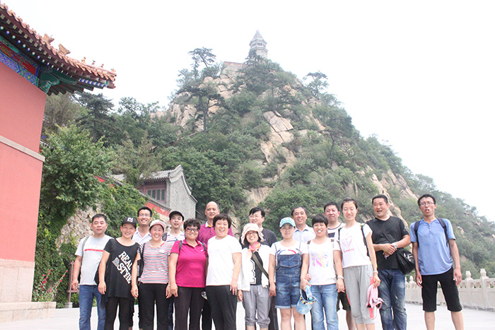 早上5点半,大家兴致勃勃的乘坐旅游大巴向天津盘山出发,车厢内王振刚总书记即兴演唱了《众人划浆撑大船》、副总书记徐福河和一分厂党支部书记王颢共同演唱了《没有共产党就没有新中国》、人资部董婷婷、李艳萍合唱了《打靶归来》,全体人员合唱《团结就是力量》。一路红歌,激情飞扬。