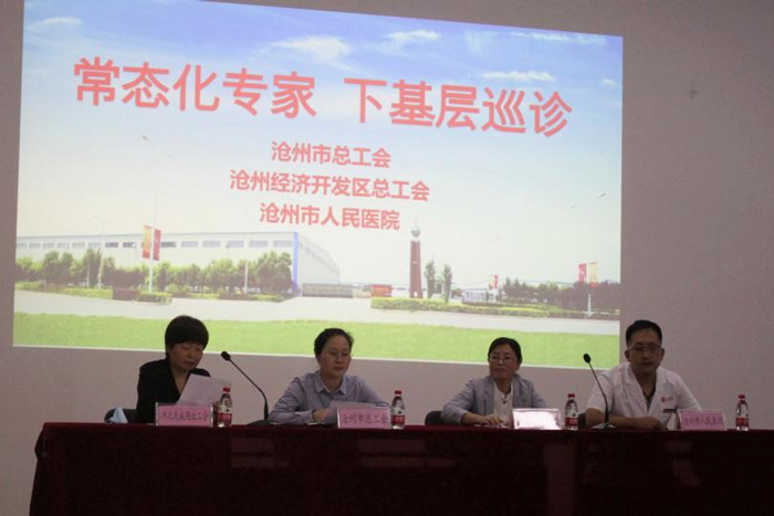 活动开始,沧州市总工会田莹副科长发表讲话,她指出,沧州市总工会通过建设“职工健康生活室”,联合沧州市人民医院定期下基层开展健康大课堂、义诊等活动,为职工送去科学的营养保健指导,对患病的职工提出相应的治疗建议,既满足了职工健康的新需求,又使之成为了关心关爱职工健康的新举措。她强调“常态化专家下基层巡诊”活动将会持续搞下去,让职工参与度更高,惠及更多的职工。
