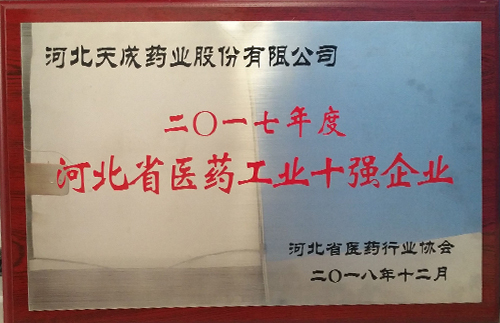 公司获得2017年河北省医药工业十强企业